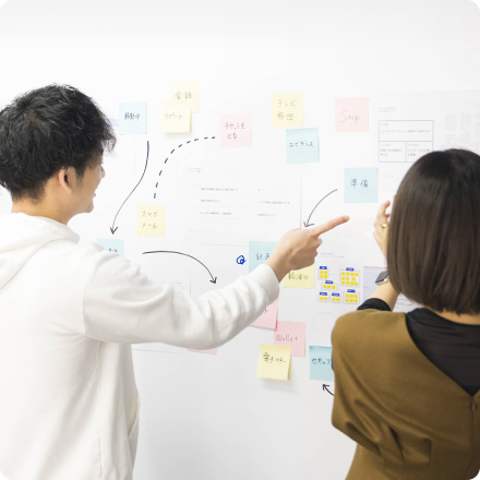 私たちは受託ではなく、課題に並走する“デザインパートナー”として事業を支援します。戦略レイヤーからサービス全体を共創し、ユーザーが触れるデジタルプロダクトの開発まで一貫して伴走。平均3〜4名のデザイナー・エンジニアが長期的に参画し、継続的な価値創出を実現します。